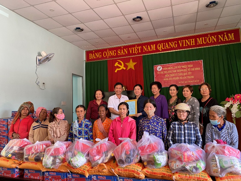 Kế hoạch số 06/KH-BVĐ ngày 12/02/2020 của Ban Vận động Quỹ “Vì người nghèo” huyện về tổ chức thực hiện Cuộc vận động Quỹ “Vì người nghèo” năm 2020; Kế hoạch số 19/KH-BCĐ ngày 25/12/2020 của Ban Chỉ đạo Tết huyện; Kế hoạch số 01/KH-MTTQ-BTT ngày 08/01/2021 của Ban Thường trực Ủy ban Mặt trận Tổ quốc Việt Nam huyện về vận động, phân bổ quà Tết cho hộ nghèo, hộ cận nghèo, đối tượng bảo trợ xã hội và các hộ khó khăn của các xã, thị trấn trong huyện đón Tết Nguyên đán Tân Sửu năm 2021; được sự quan tâm, hỗ trợ của Hội Bảo trợ Người khuyết tật – Trẻ mồ côi và Bệnh nhân nghèo tỉnh Bình Phước, sáng ngày 19/01/2021, tại trụ sở Ủy ban nhân dân xã Lộc Thành, Hội Bảo trợ Người khuyết tật – Trẻ mồ côi và Bệnh nhân nghèo huyện Lộc Ninh đã phối hợp Hội Bảo trợ tỉnh và Chi hội Thiện Nhân – Thành phố Hồ Chí Minh trao tặng 100 phần quà cho các hộ nghèo, đối tượng bảo trợ xã hội, đồng bào dân tộc thiểu số trong xã. Mỗi phần quà trị giá gần 500 ngàn đồng, gồm gạo, mì tôm và các nhu yếu phẩm thiết thực.